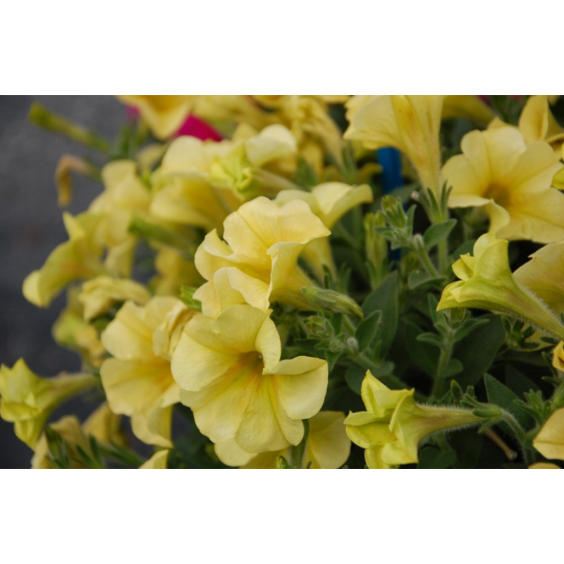 Petunia Sanguna Deep Yellow to efektowna odmiana petunii o intensywnie żółtych, dużych kwiatach, które przyciągają wzrok przez cały sezon. Roślina charakteryzuje się zwartym, lekko zwisającym pokrojem i bardzo obfitym kwitnieniem od wiosny aż do pierwszych przymrozków. Doskonale sprawdza się w donicach, skrzynkach balkonowych oraz wiszących koszach, tworząc gęste, kolorowe kaskady. Jest łatwa w uprawie, dobrze znosi słońce i szybko się rozrasta, dzięki czemu stanowi piękną ozdobę balkonów, tarasów i ogrodów.