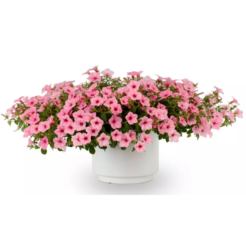Petunia Garden Supreme Sweet Pink to piękna odmiana petunii o delikatnych, jasnoróżowych kwiatach, które obficie pojawiają się przez cały sezon. Roślina tworzy gęste, rozłożyste kępy i długo zachowuje dekoracyjny wygląd. Doskonale nadaje się do uprawy w skrzynkach balkonowych, donicach oraz wiszących koszach, gdzie tworzy efektowne, kwitnące kompozycje. Jest łatwa w uprawie, dobrze rośnie w miejscach słonecznych i kwitnie nieprzerwanie od wiosny aż do pierwszych przymrozków.