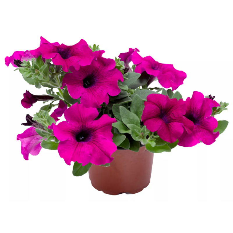 Petunia Mega Purple to wyjątkowa odmiana, która urzeka intensywnym, głębokim purpurowym kolorem kwiatów. Jej bujne kwitnienie i kaskadowy pokrój sprawiają, że jest idealna do tworzenia efektownych kompozycji w wiszących koszach lub na balkonach. Jest odporna na zmienne warunki pogodowe, w tym deszcz i wiatr, a jej kwiaty zachowują intensywność koloru przez cały sezon. Ma większe kwiaty niż klasyczna, purpurowa odmiana surfinii.
