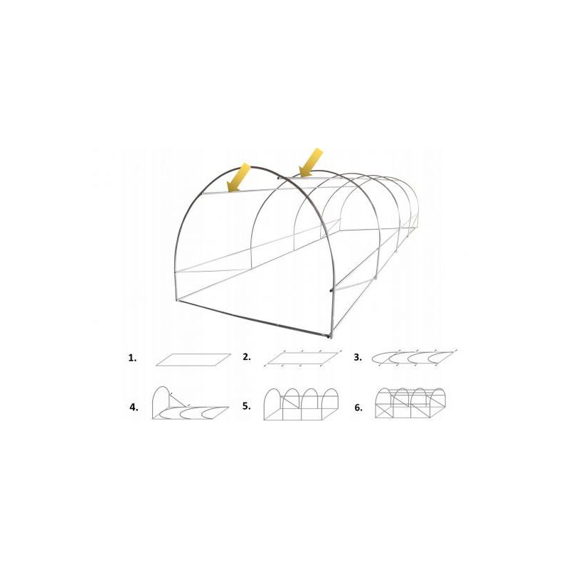 - 6x stalowe łuki podtrzymujące pokryte materiałem PVC