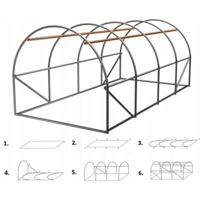 - 6x stalowe łuki podtrzymujące pokryte materiałem PVC